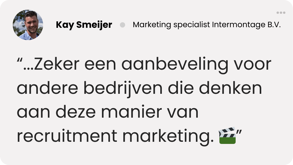 Bedrijven vinden het vaak lastig om hun vacatures bij de juiste mensen onder de aandacht te brengen. Wij bieden gerichte promoties op social media, gecombineerd met video’s die speciaal zijn afgestemd op jouw doelgroep. Zo bereik je moeiteloos de beste kandidaten, op de plekken waar zij zich bevinden.